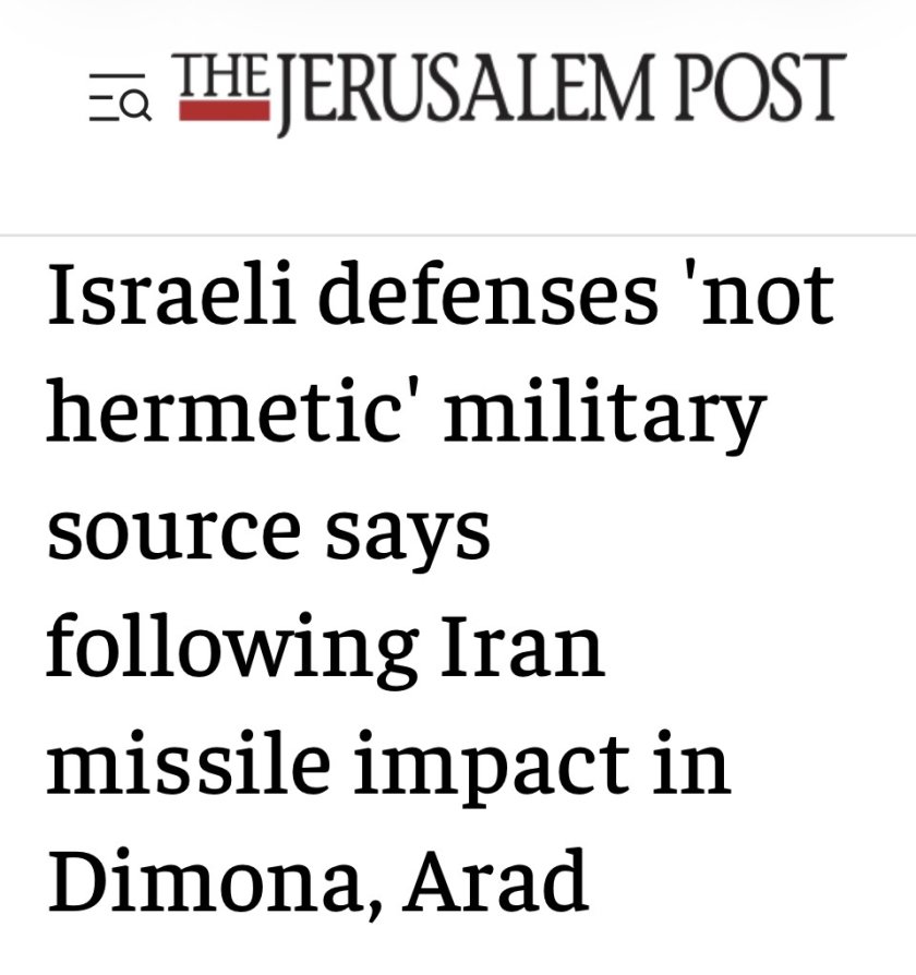 Предварително разследване на Израелските отбранителни сили, цитирано от The Jerusalem Post, съобщава, че американска система за отбрана THAAD, разположена специално за охрана на стратегическите бази на Израел в Негев и ядрения център Димона, не е успяла да прехване ирански ракети през уикенда.