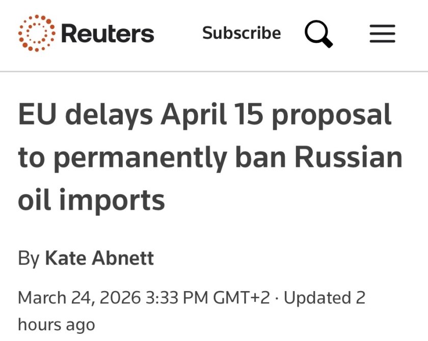 Европейската комисия отлага представянето на законодателно предложение за постоянна забрана на вноса на руски петрол. Текстът е беше планиран за 15 април, но вече е изваден от актуализирания законодателен график на ЕС, съобщава „Ройтерс“.