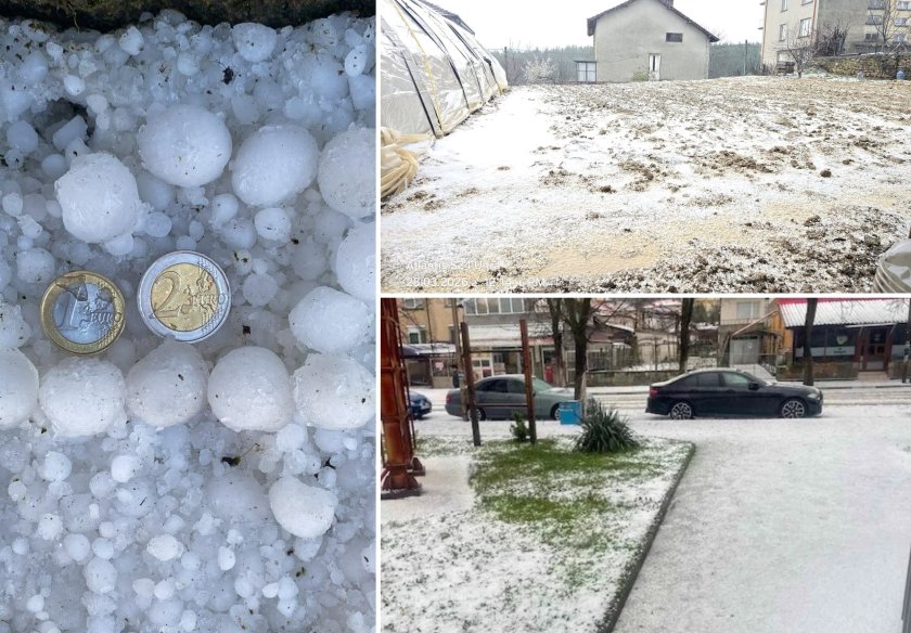 Кадри на Meteo Balkans показват силна градушка, докато циклон определя времето в страната