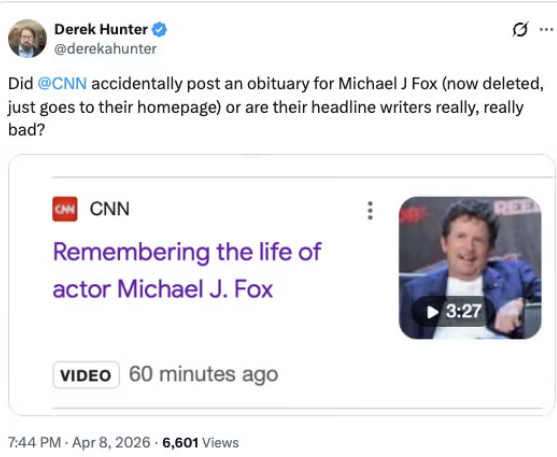 CNN „погреба“ Майкъл Джей Фокс по грешка: актьорът отговори с ирония