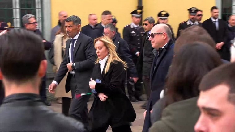 Церемонията се проведе в Понтида, североизточно от Милано. Там се чуха остри скандирания от радикални привърженици на „Северна лига“. Партията в момента е част от управляващата коалиция на Мелони.