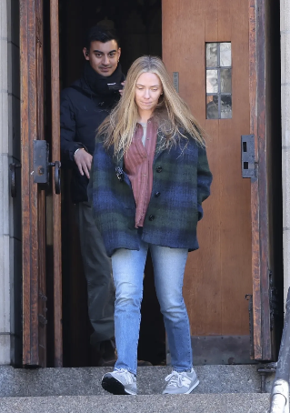 41-годишната звезда беше облечена в кафява риза, синьо карирано яке, светлосини дънки и маратонки. Косата ѝ беше дълга и разпусната. Впечатление направи, че е без грим.
