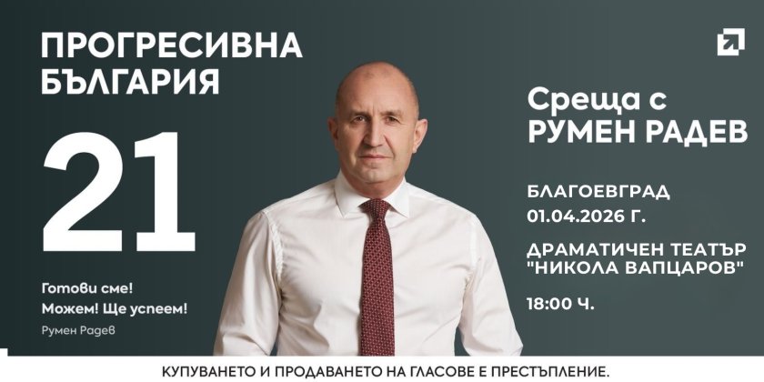 Президентът Румен Радев ще се срещне с граждани на Благоевград на 1 април от 18:00 часа в Драматичния театър „Никола Вапцаров“.