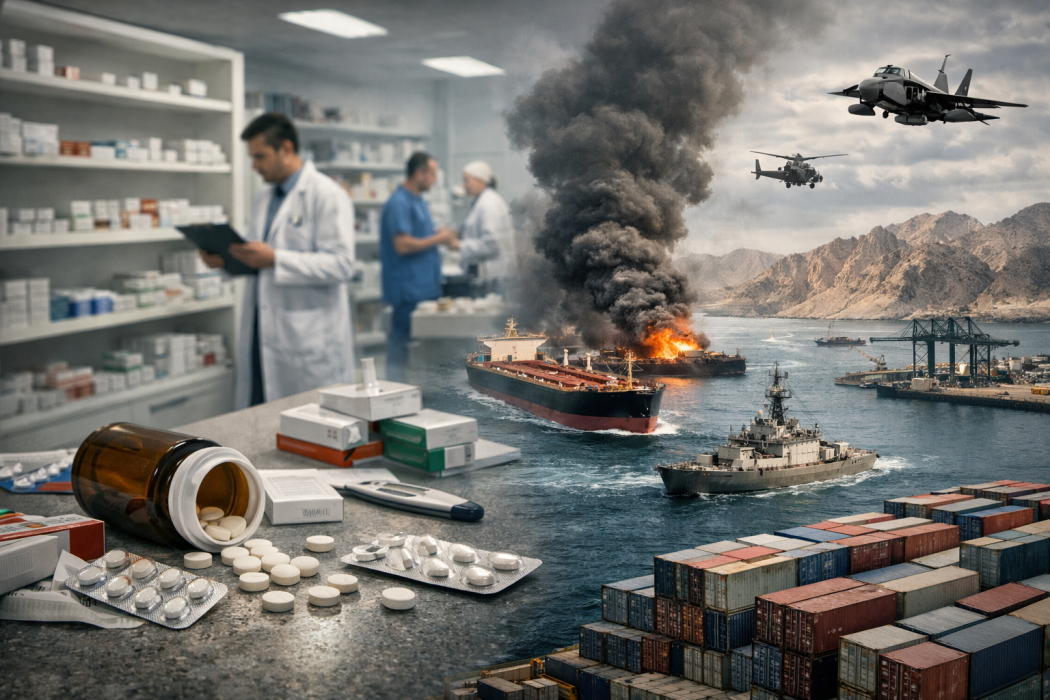 Експерти описват ситуацията като „перфектна буря“. Причината е комбинация от геополитическо напрежение и уязвими вериги на доставка. Когато транспортът поскъпва и се забавя, ефектът стига директно до аптеките и болниците.
