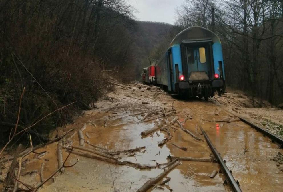 Към момента са спрени всички пътнически и товарни влакове по направлението. Движението ще остане блокирано до отстраняване на падналата земна маса.