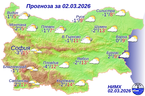 Днес в по-голямата част от страната ще бъде предимно слънчево с разкъсана висока облачност. В сутрешните часове в равнините и низините на места ще има мъгла или ниска слоеста облачност. След обяд видимостта ще се подобрява.